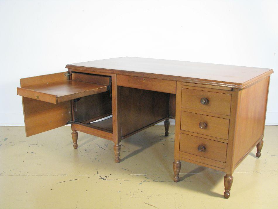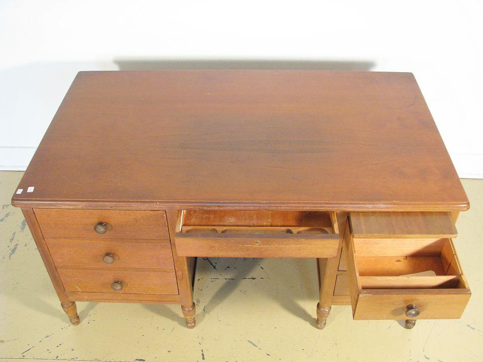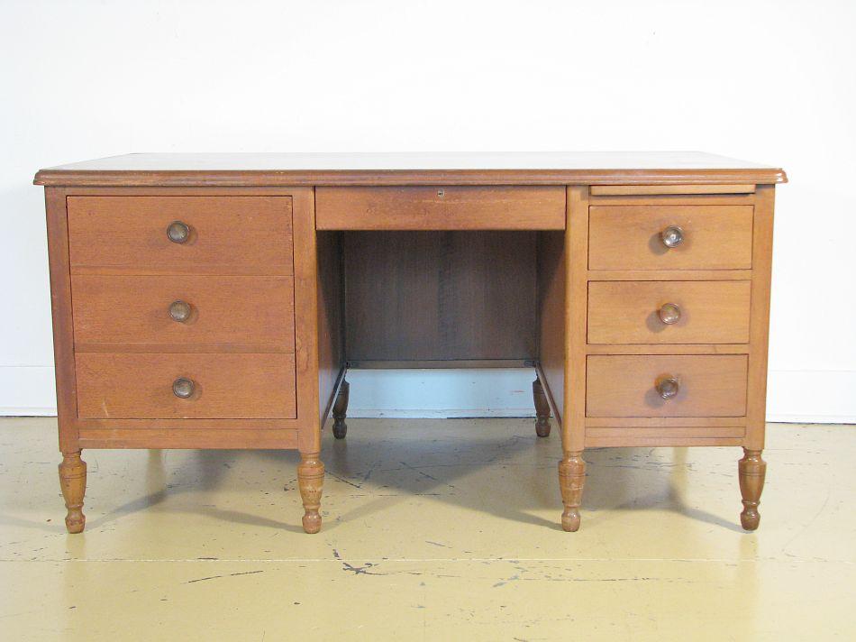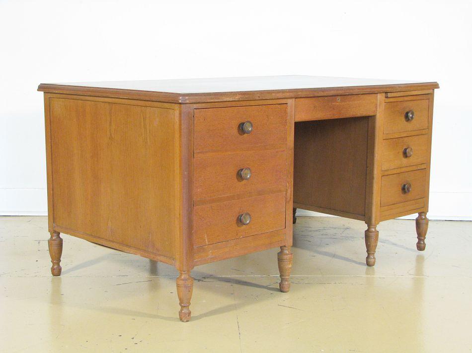 A Mid 20th Century Neoclassical Style Oak Twin Pedestal Desk.