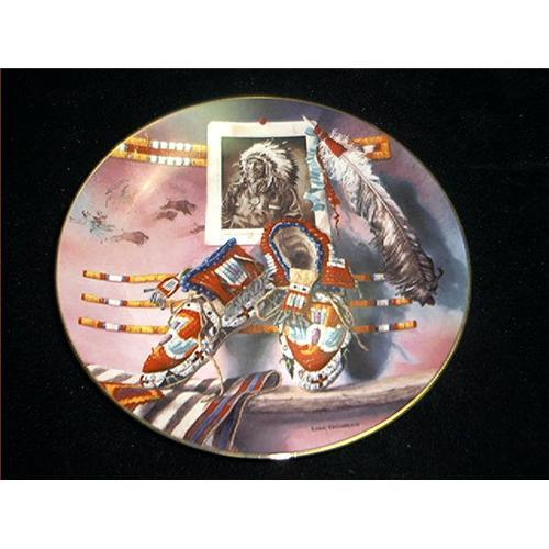 A Mile in his Moccasins by Lisa Danelle. It is a Edition Limited to 28 days firing and came from Lore of the West. Cert Number is 1830 E-12-1-93 V. "C" 1993 Signed cert James P. Smith JR Chairman of Hamilton Collection. Still in original box with all cert's and paperwork on it. Perfect condition and a great add to any collection you may have. Also great gift item to anyone who likes Native American items. Also comes with a book lit by Lisa Danelle and info on her and this plate. Enjoy
