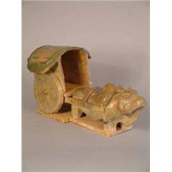 A Ming dynasty glazed pottery ox and cart (restored harness strut) 11.5in. £300-500
