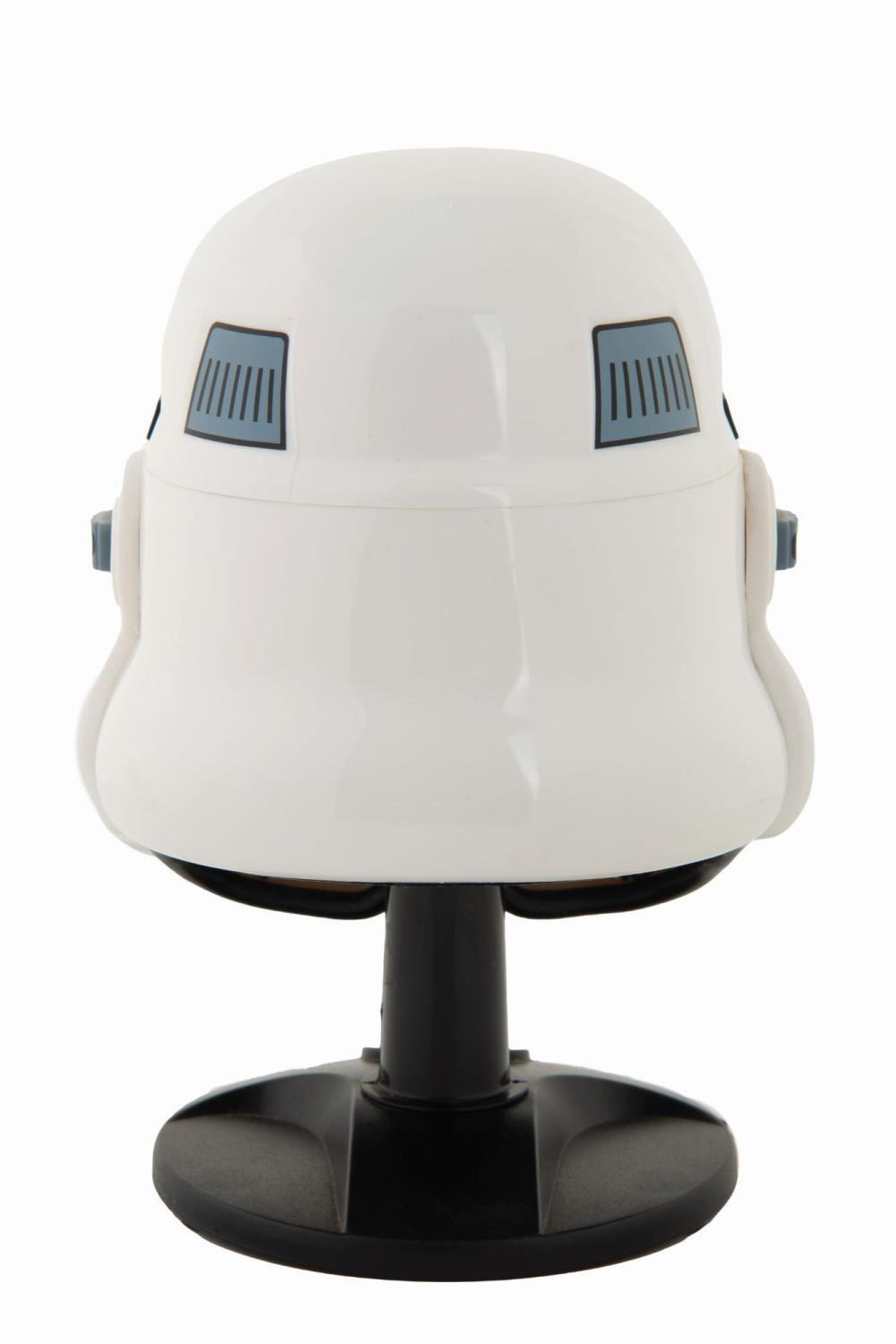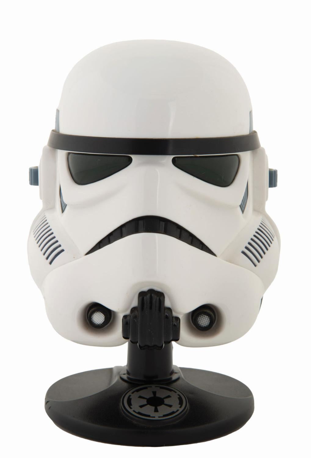 (Lucasfilm/Riddell, 1997) A Miniature Stormtrooper Helmet, produced by Riddell. The helmet is realized at 45% of actual size and meticulously patterned after the screen-used originals. It includes components of diecast metal with a detailed interior. Measuring 7.5"x6" on its stand, the helmet is in fine condition with one .25" scuff from display. Includes COA, box, and helmet schematic.