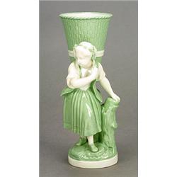 A Minton 'Celadon'and white porcelain figural posy holder, modelled as a girl with a large basket on her back, 22cm high, impressed marks, date code for 1868 (see illustration) £100-150