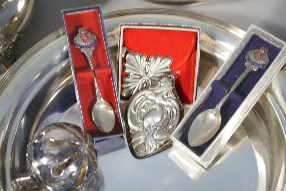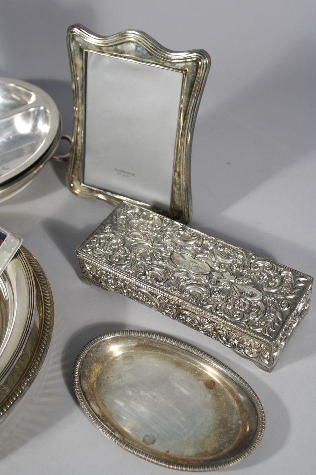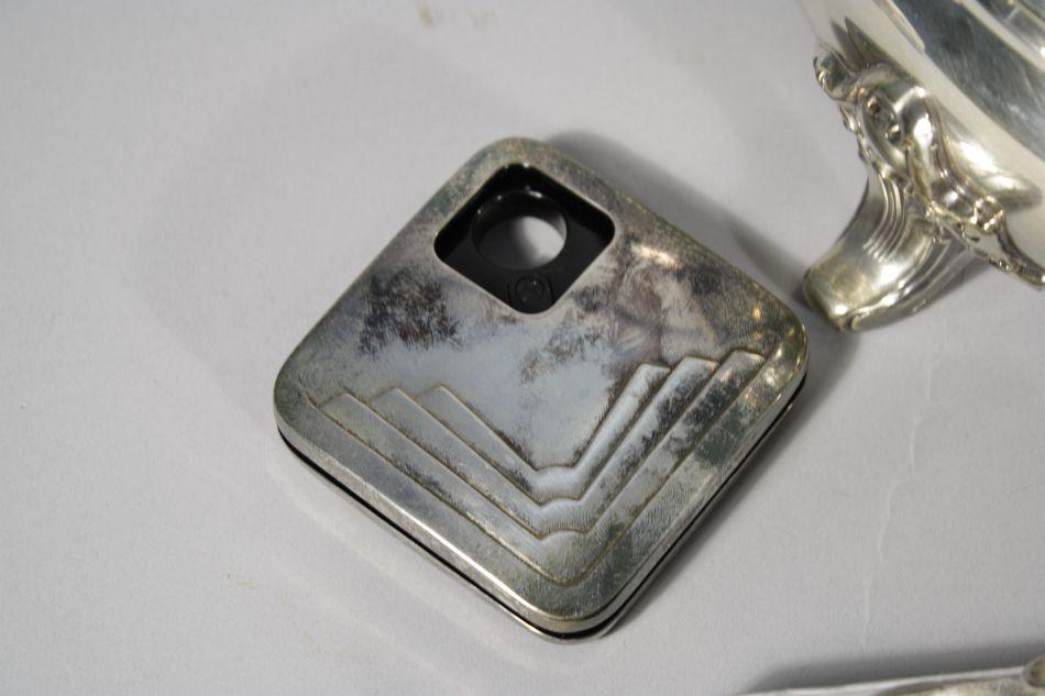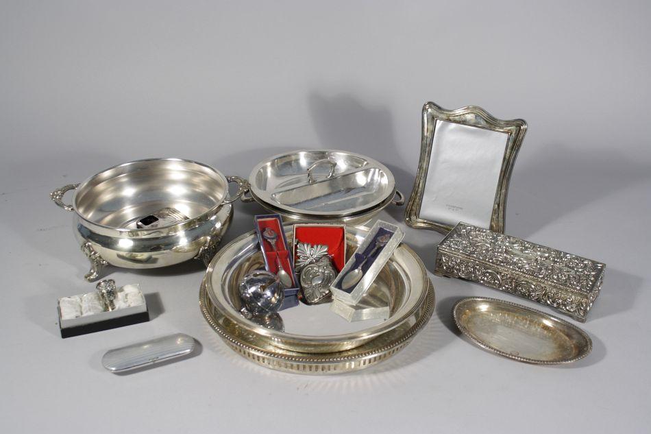A Miscellaneous Collection of Decorative Items, Including Silver Plated Serving Items.