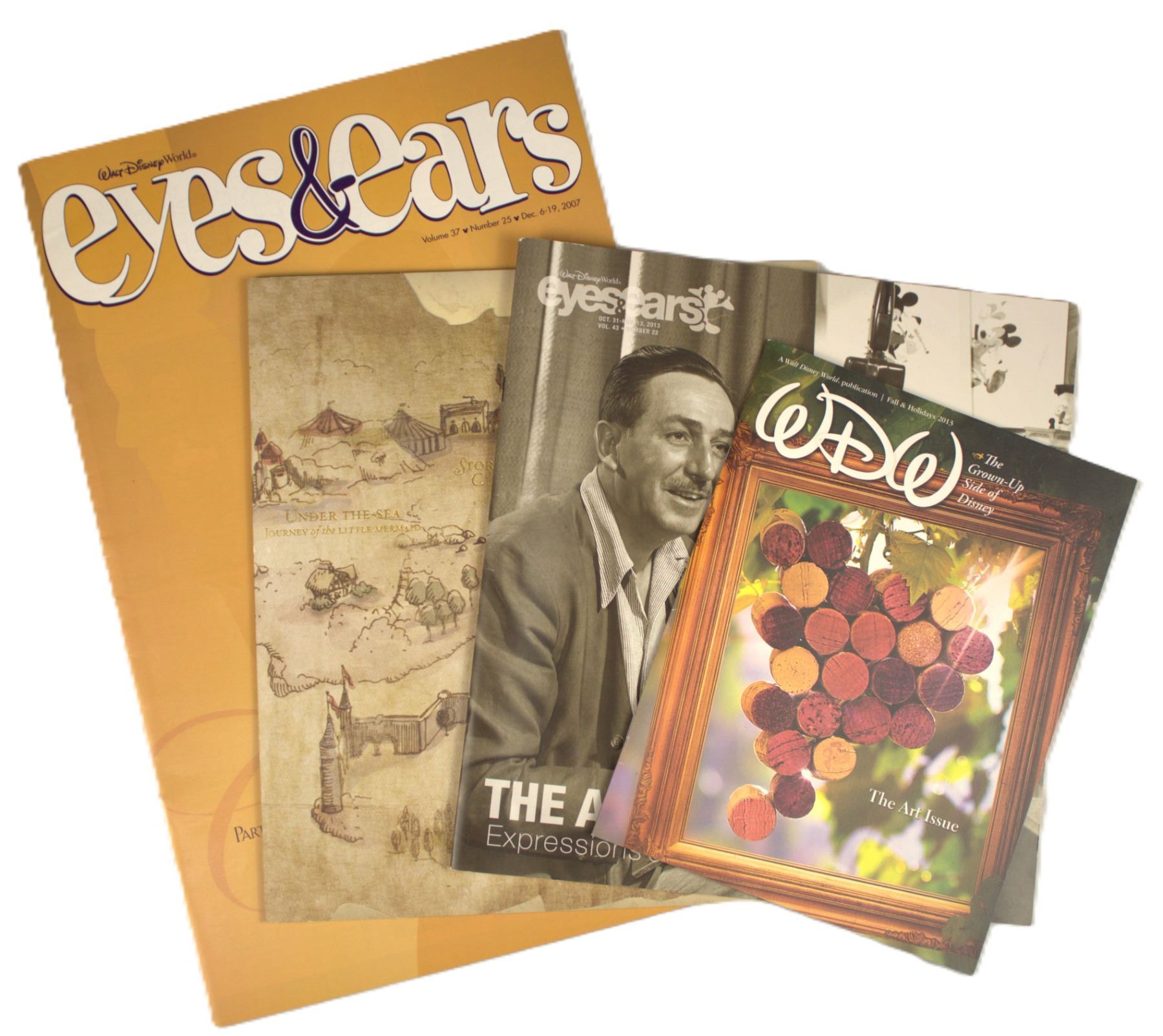 This Selection of Eyes and Ears Magazine and Walt Disney World Magazine focuses on art and awards as well as New Fantasyland. The New Fantasyland magazine is large format and full color throughout. Magazines are in excellent condition.