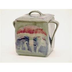 A Moorcroft 2-handled claremont pattern biscuit box of square form, 7ins across handles (cracked) (see illustration) £500-700