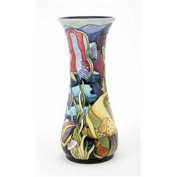 A Moorcroft Martinique vase, of waisted form with flared rim, late 1990's, decorated throughout in various colours against a blue-green ground, no 88, impressed marks and painted initials, 12ins £400-500