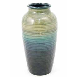 A Moorcroft 'Natural Pottery' vase, with flared rim, circa 1940, crafted with a typical 'ribbed' surface effect and decorated in shades of blue and green, impressed marks and painted initials, 13.25ins £350-400