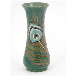 A Moorcroft Peacock vase, circa 1989, designed by Sally Tuffin for Liberty, decorated in shades of turquoise, green and brown against a green ground, impressed and painted marks, 8ins £180-220