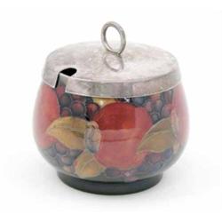 A Moorcroft pomegranate preserve jar with plated cover, for Goodriches America, circa 1920, decor...