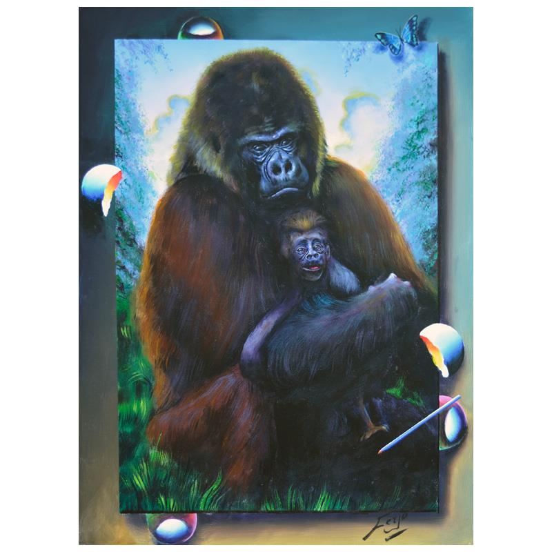 "A Mother's Care" is an original painting, oil on stretched canvas, by Ferjo. Hand signed by the artist, this piece comes with a letter of authenticity. Measures approx. 30" x 24" (image).