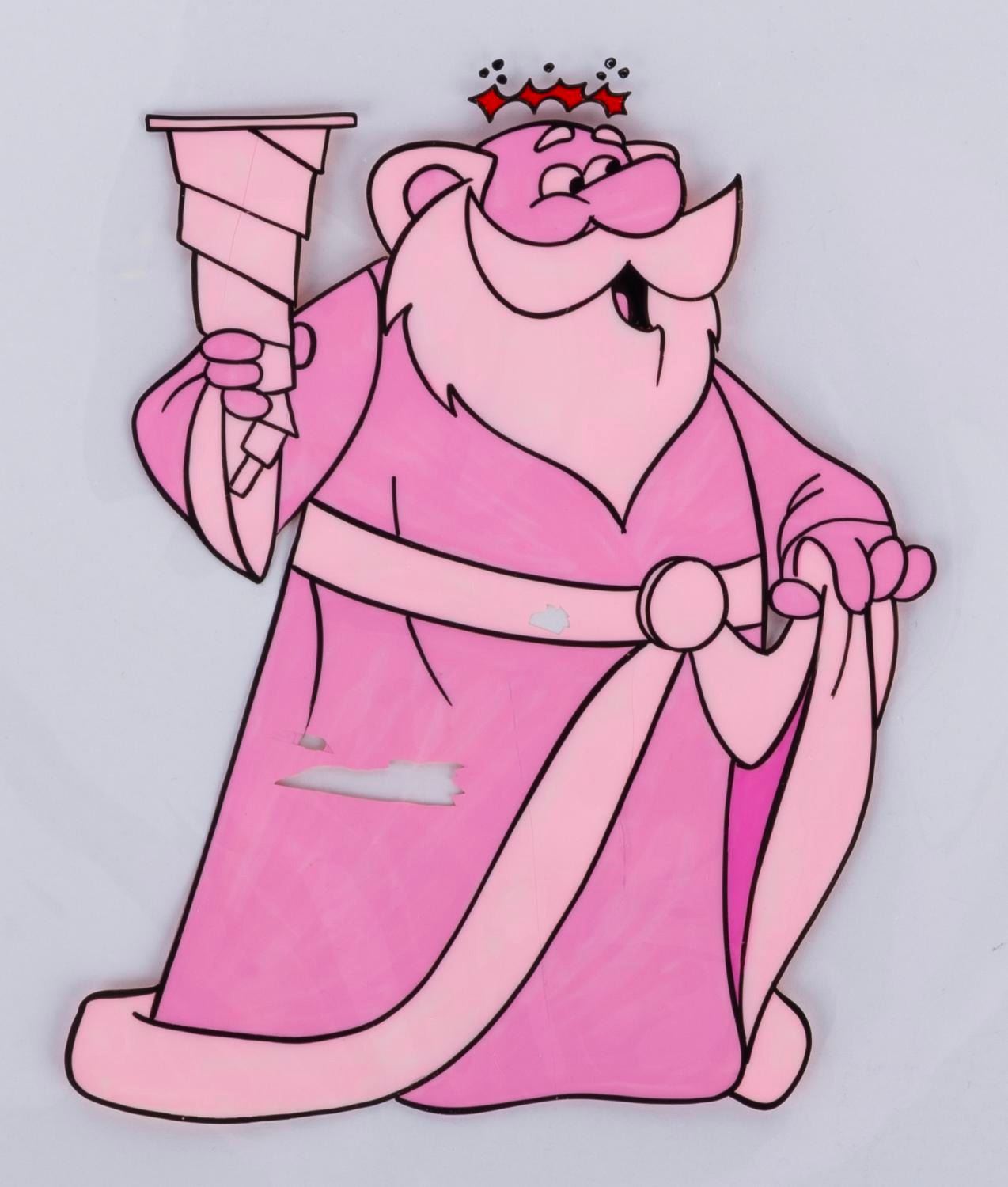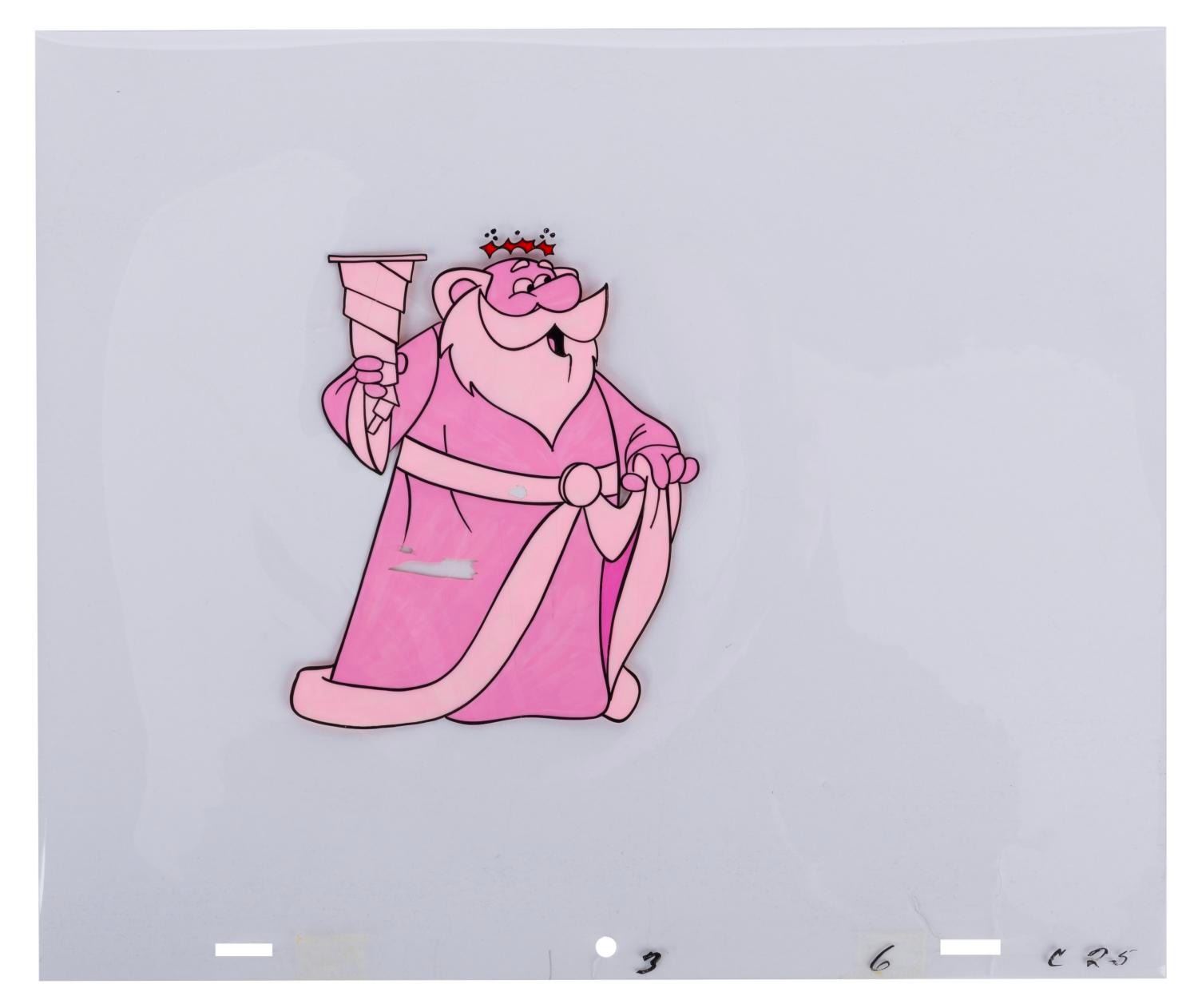 (UPA, 1962) An original production cel of the Ghost of Christmas Present from"Mr. Magoo’s Christmas Carol." With an image size of 4.75" x 5.5" on the 10.5" x 12.5" cel, the piece displays in good condition with three spots of paint loss to the robe and sash.