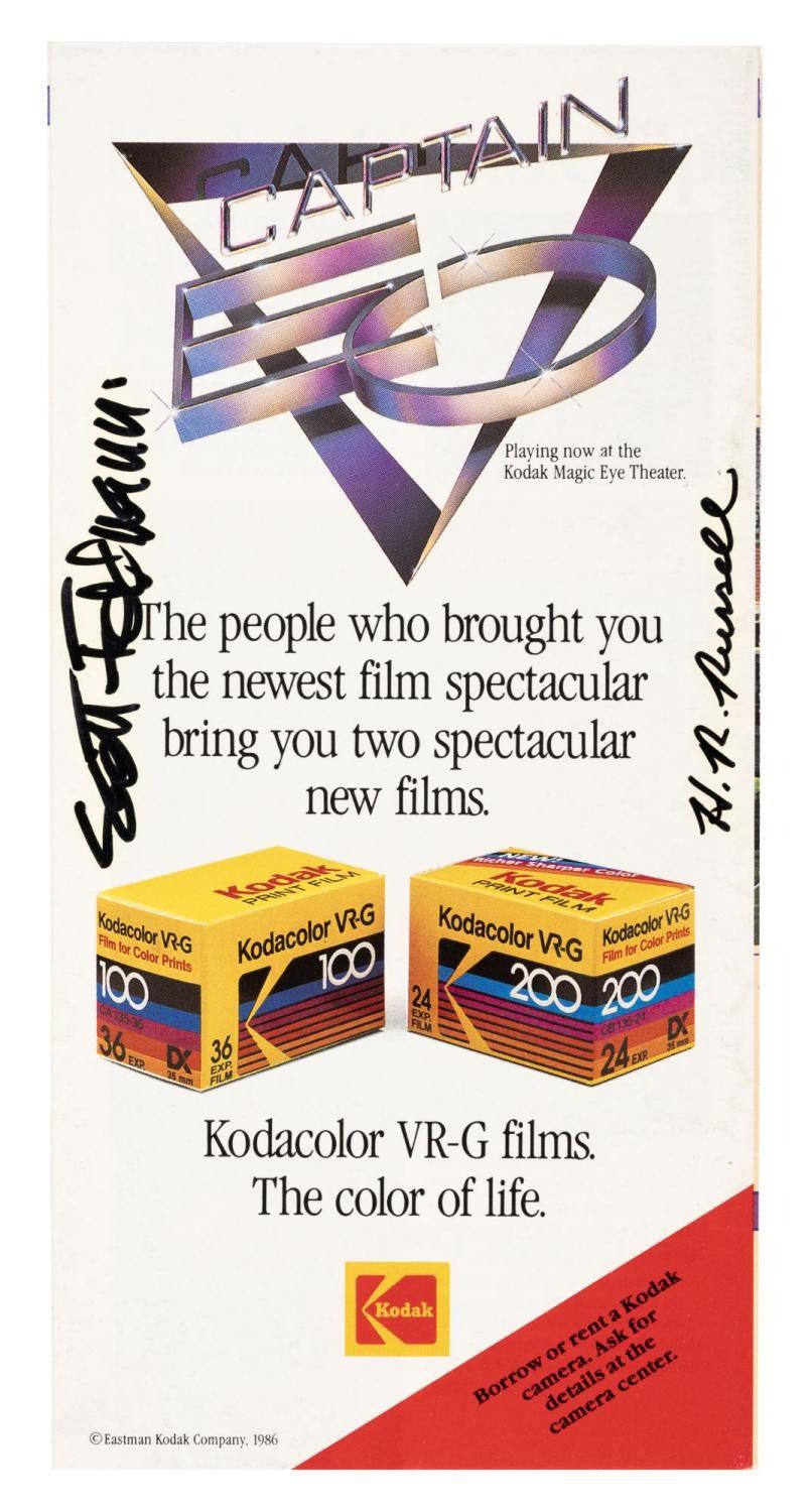 (Disneyland, 1986) A Disneyland souvenir guide signed on the reverse by Disney artists Scott Feldmann and H.R. Russell. Measuring 3.75” x 7.5”, the guidebook displays is in very good condition with light wear.