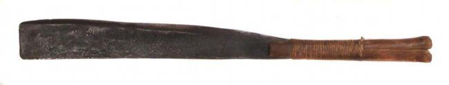The wooden grip with rattan wrap, heavy handforged blade with single edge. Second half of the 19th century.Generally worn.Overall length 56.8 cm.