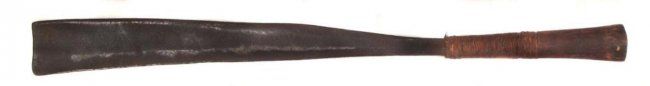 The wooden grip with rattan wrap, heavy handforged blade with single edge. Second half of the 19th century.Generally worn.Overall length 59.8 cm.