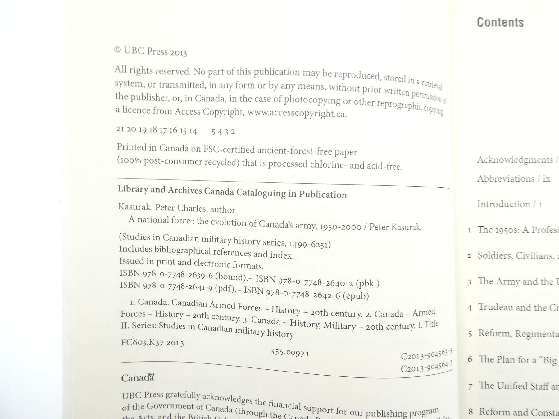"A NATIONAL FORCE, THE EVOLUTION OF CANADA'S ARMY, 1950-2000" BOOK