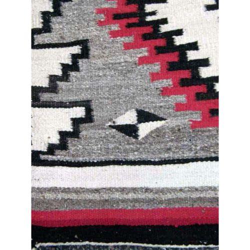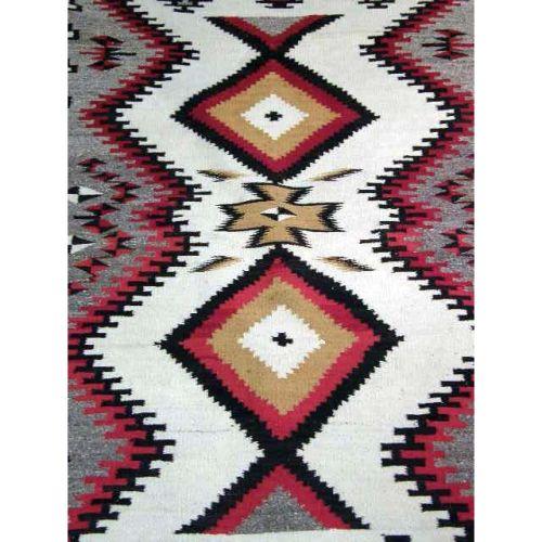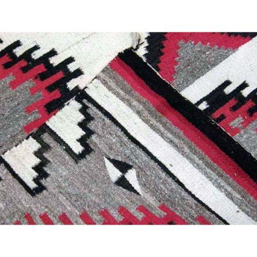 A NATIVE AMERICAN WOVEN RUG<BR><BR>In tones of gray, black, red, and beige, in a diamond design, wear, 53"w x 106"l