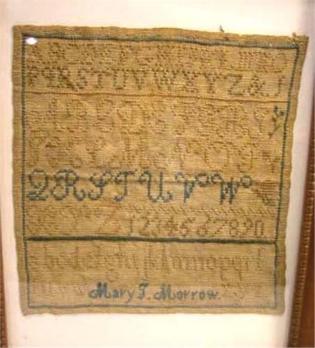 A NEDDLEWORK SAMPLER; Inscribed Mary F. Morrow, Together with an unsigned sampler, smallest 8"h x 8"w