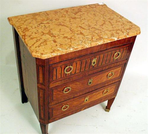 Probably Italian, underside of top bears a handwritten European paper label. Some cracks, minor losses, and repairs. 31 1/2"h x 28"w x 17 1/2"d.