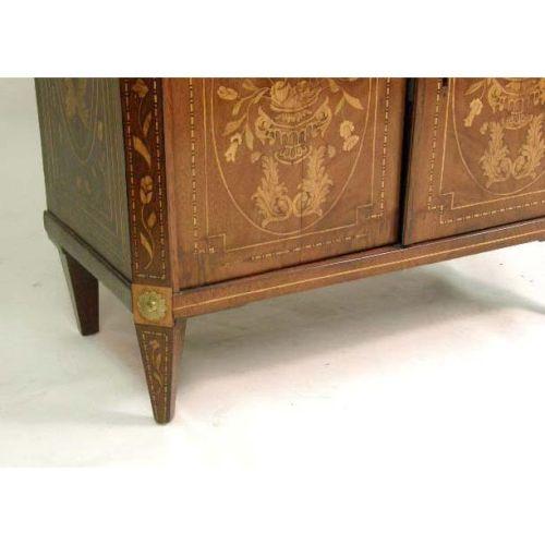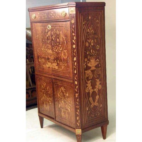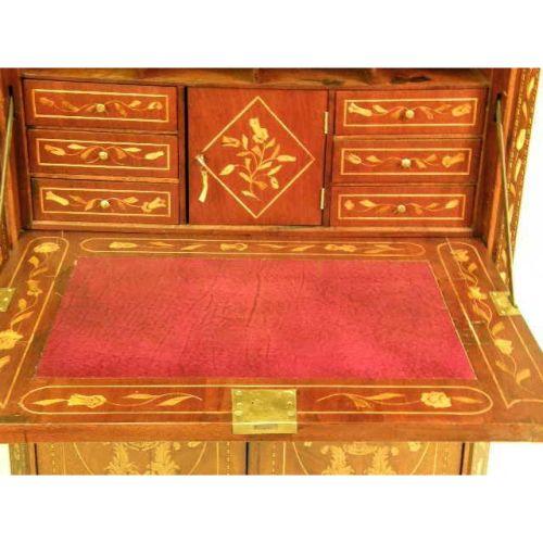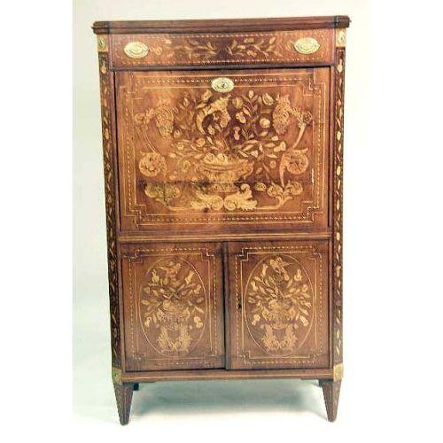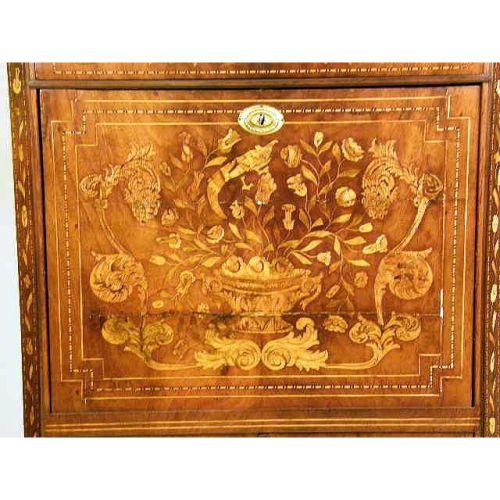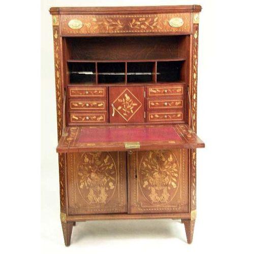 A NEOCLASSICAL STRING-INLAID MARQUETRY MAHOGANY SECRETAIRE A`ABATTANT<BR><BR>Continental, losses and repairs, 58"h x 34"w x 17"w