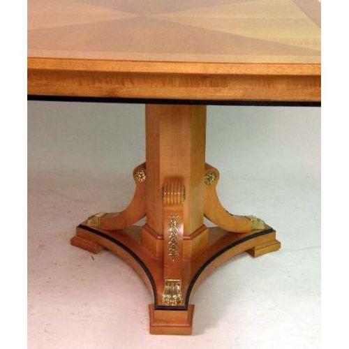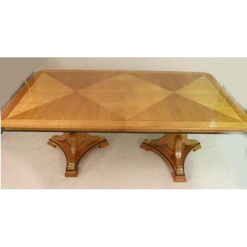A NEOCLASSICAL-STYLE BRASS-MOUNTED BIRCH TWO-PEDESTAL DINING TABLE<BR><BR>In the Baltic tradition, with two additional leaves, 20"w, 30-1/2"h x 6`4"w closed x 45"d