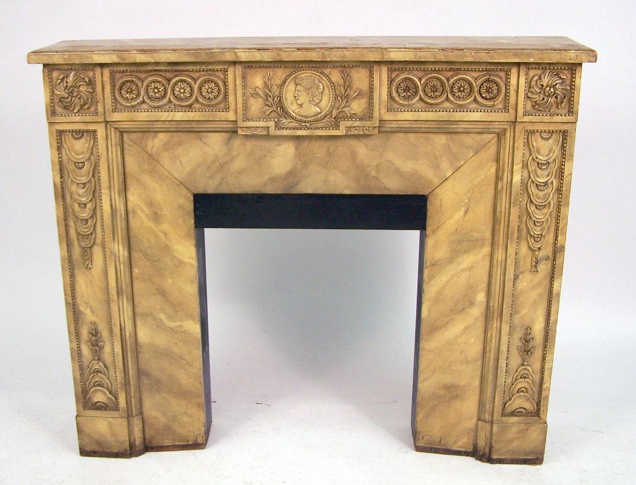 A NEOCLASSICAL-STYLE CARVED AND FAUX-BOIS-GRAINED MANTLE