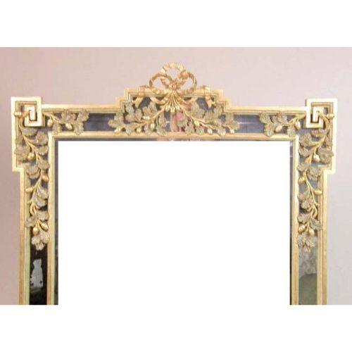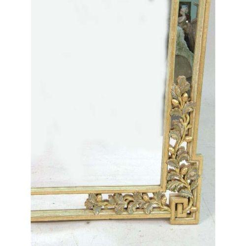 A NEOCLASSICAL-STYLE PARCEL-GILT AND VERDIGRIS LOOKING GLASS<BR><BR>4`7"h x 38-1/2"w