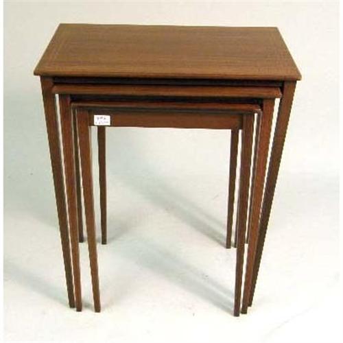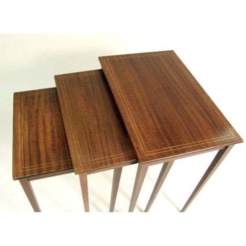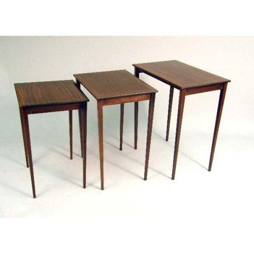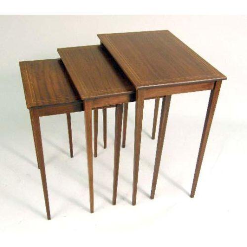 A NEST OF THREE GEORGIAN STYLE MAHOGANY QUARTETTO TABLES<BR><BR>Each rectangular, on square legs, 28"h x 24-1/2"w