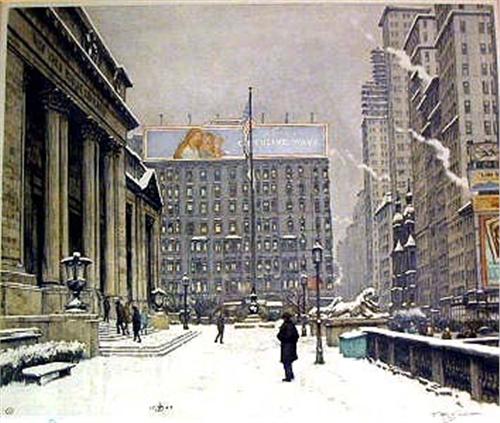 A NEW YORK PUBLIC LIBRARY COLORED LITHOGRAPH; Signed LR T.F. Simon (losses) 17"h x 15"w