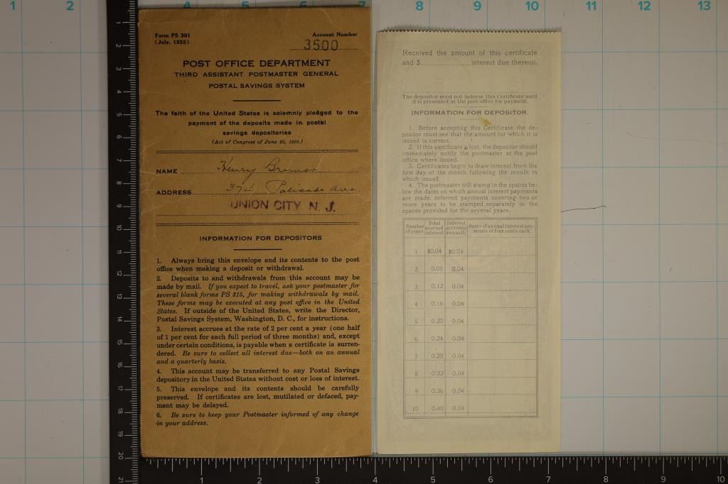 POST OFFICE DEPARTMENT ENVELOPE FROM THE UNION CITY OF NEW JERSEY