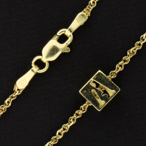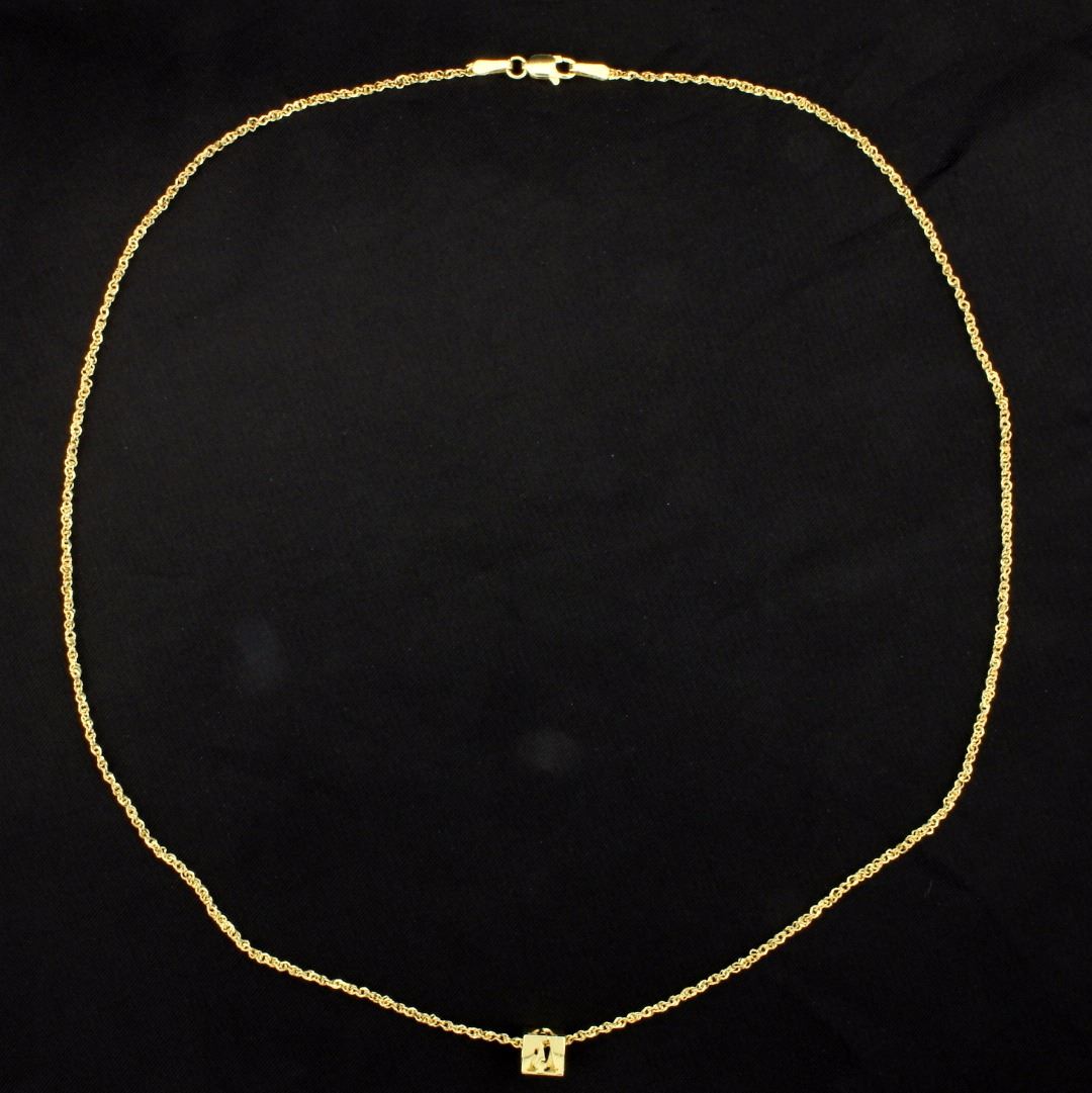 14K yellow gold, the 1/4 inch square pendant is on a 18 1/2 inch chain, that has a lobster clasp.           2.9g