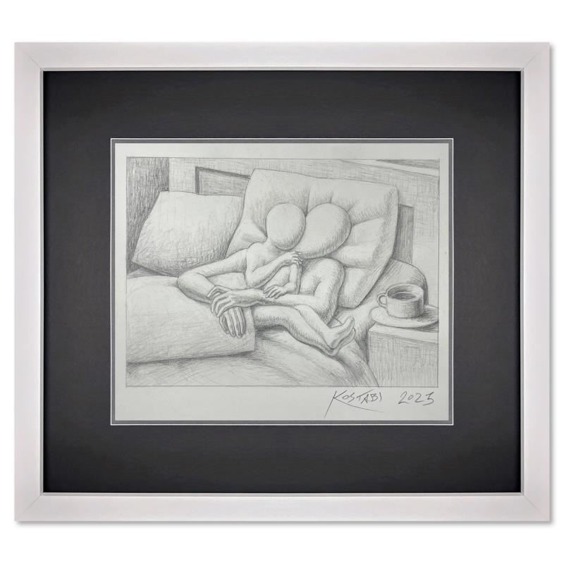 "A New Day" is an original drawing on paper by Mark Kostabi, hand signed by the artist. This piece comes custom framed and includes a certificate of authenticity. Measures approximately 12.5" x 14" (frame), 6.5" x 8" (image). This item requires special handling and may have a longer than usual turnaround.