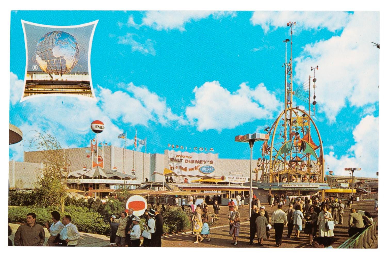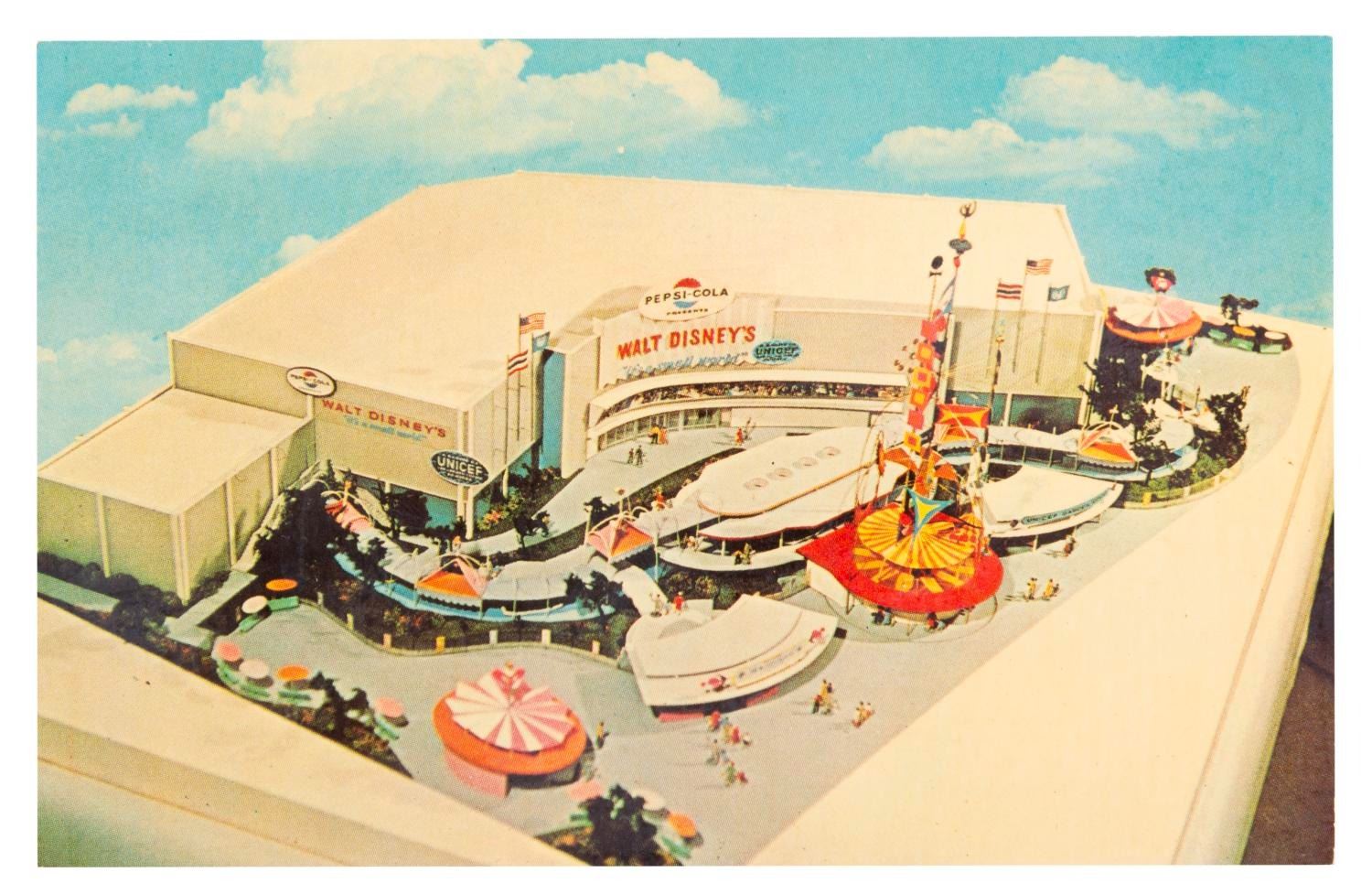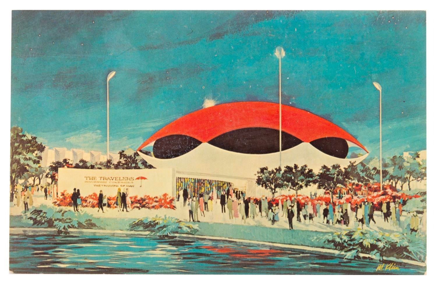 (World's Fair, 1964-65) A collection of 30 postcards and an American Airlines-sponsored guidebook from the 1964-65 New York World's Fair. The 3.75" x 5.5" postcards are in good condition with discoloration, and one written on. The 4" x 6" guidebook is in good condition with edge wear, creasing, and discoloration.