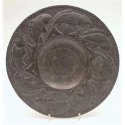A Newlyn copper wall plate, broad rimmed and continuously embossed with fishes, unmarked, 12ins. £100-150