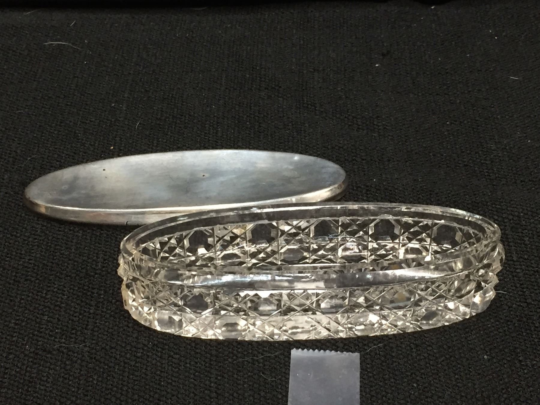 A Nice Crystal Dish with A Silver Hallmarked Sterling Silver Lid