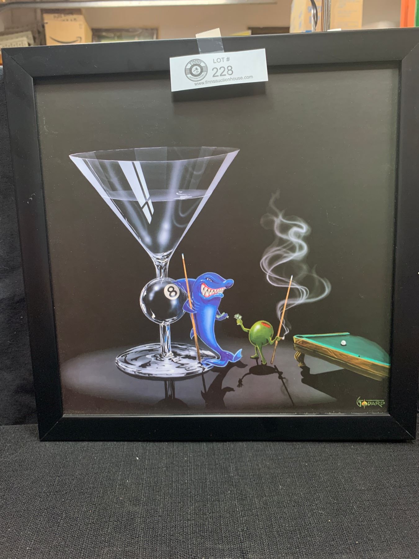 A Nice Goddard Nicely Framed Print. " 8 Ball Martini" 13.5" w x `13.5" H