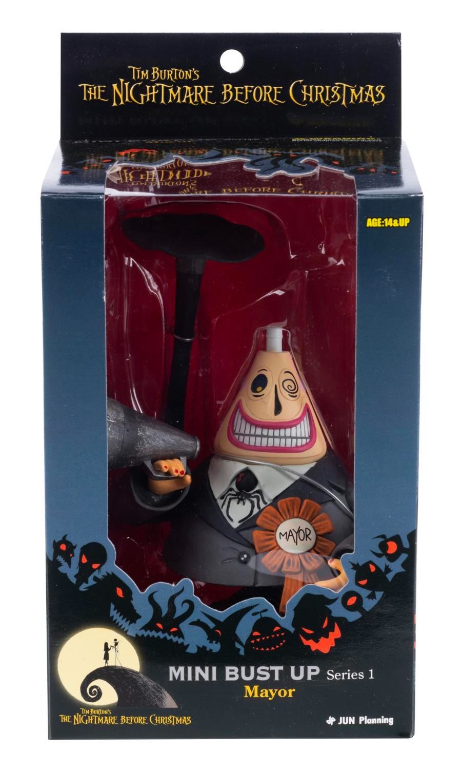 (Jun Planning, 2000s) A "Tim Burton's The Nightmare Before Christmas" Series 1 Mini Bust Up of the Mayor with a rotating head feature. The figure stands 9" tall assembled, and is as new in the box.