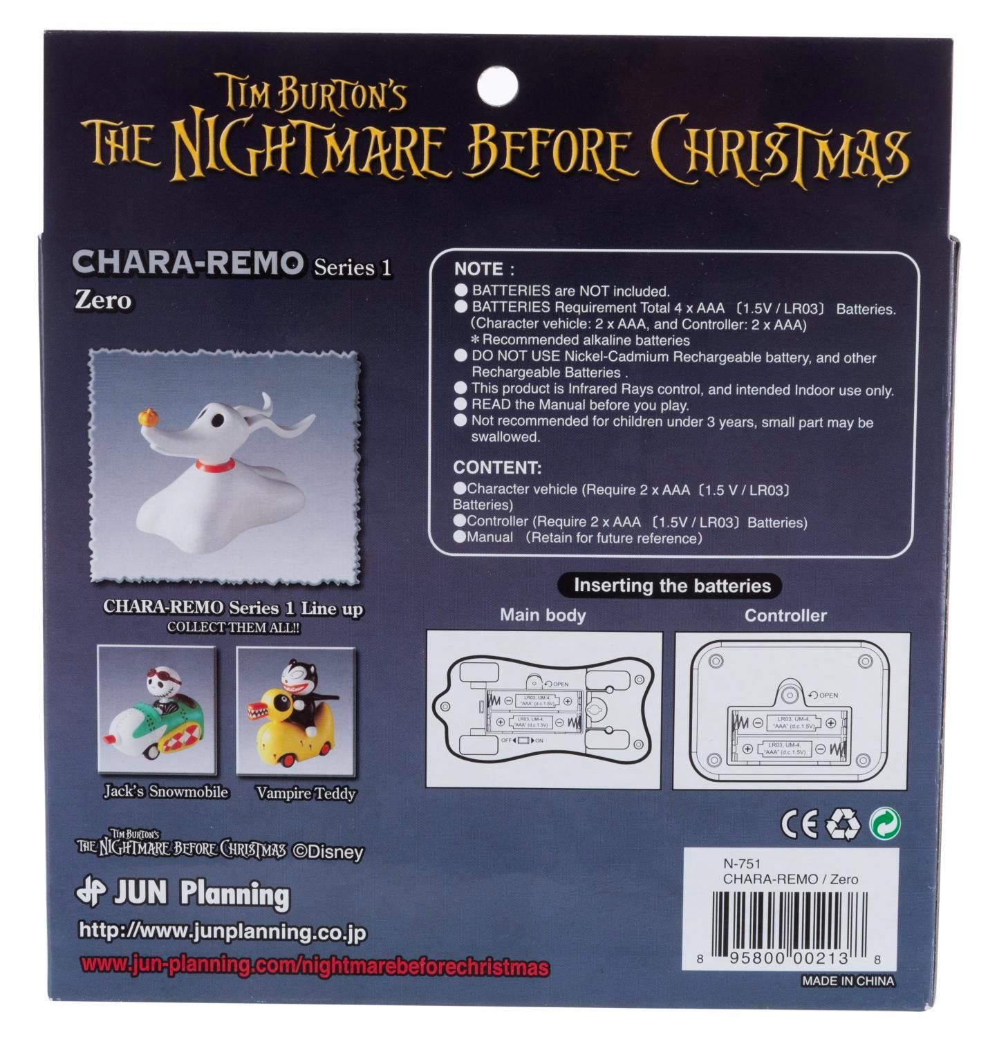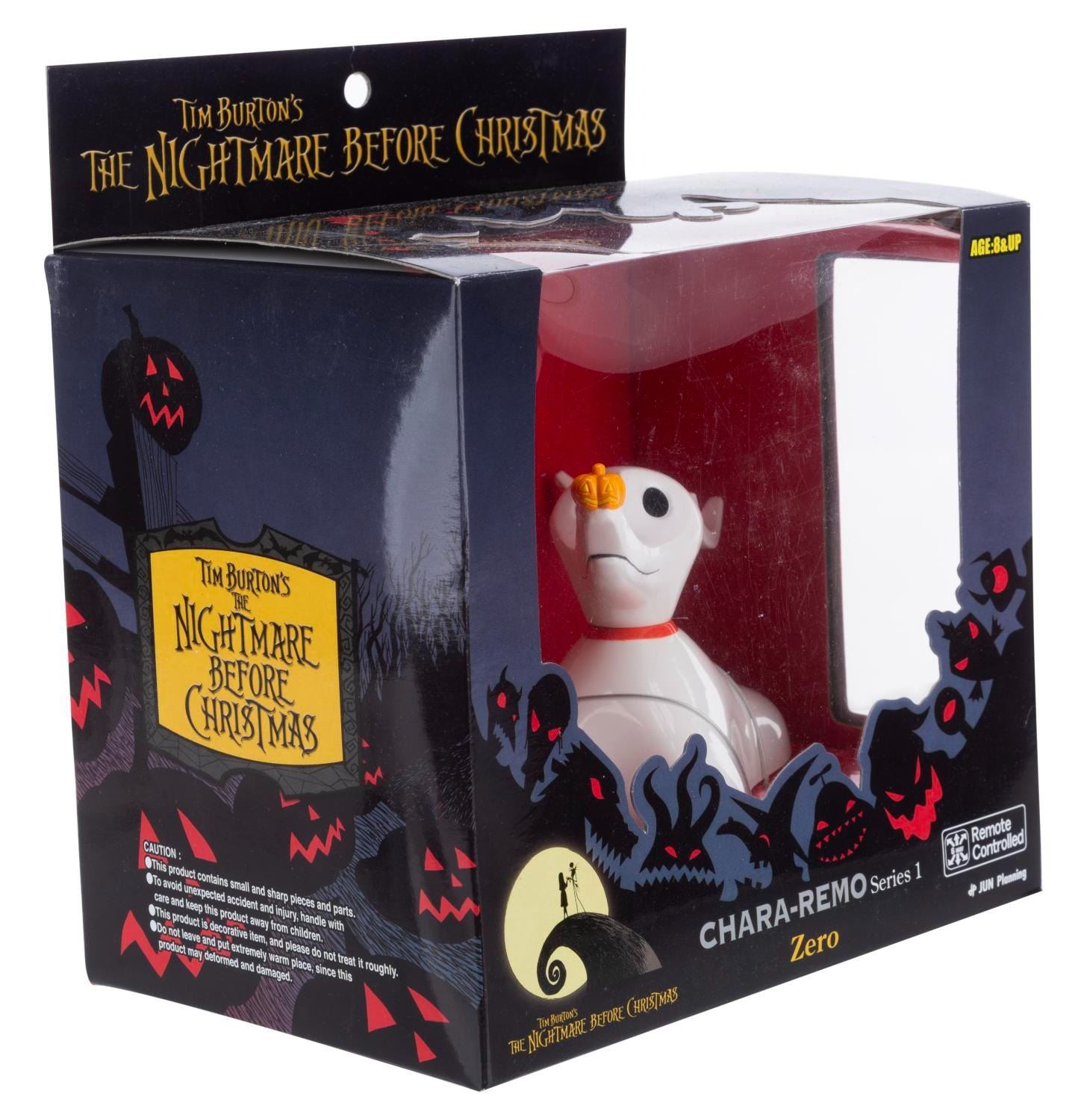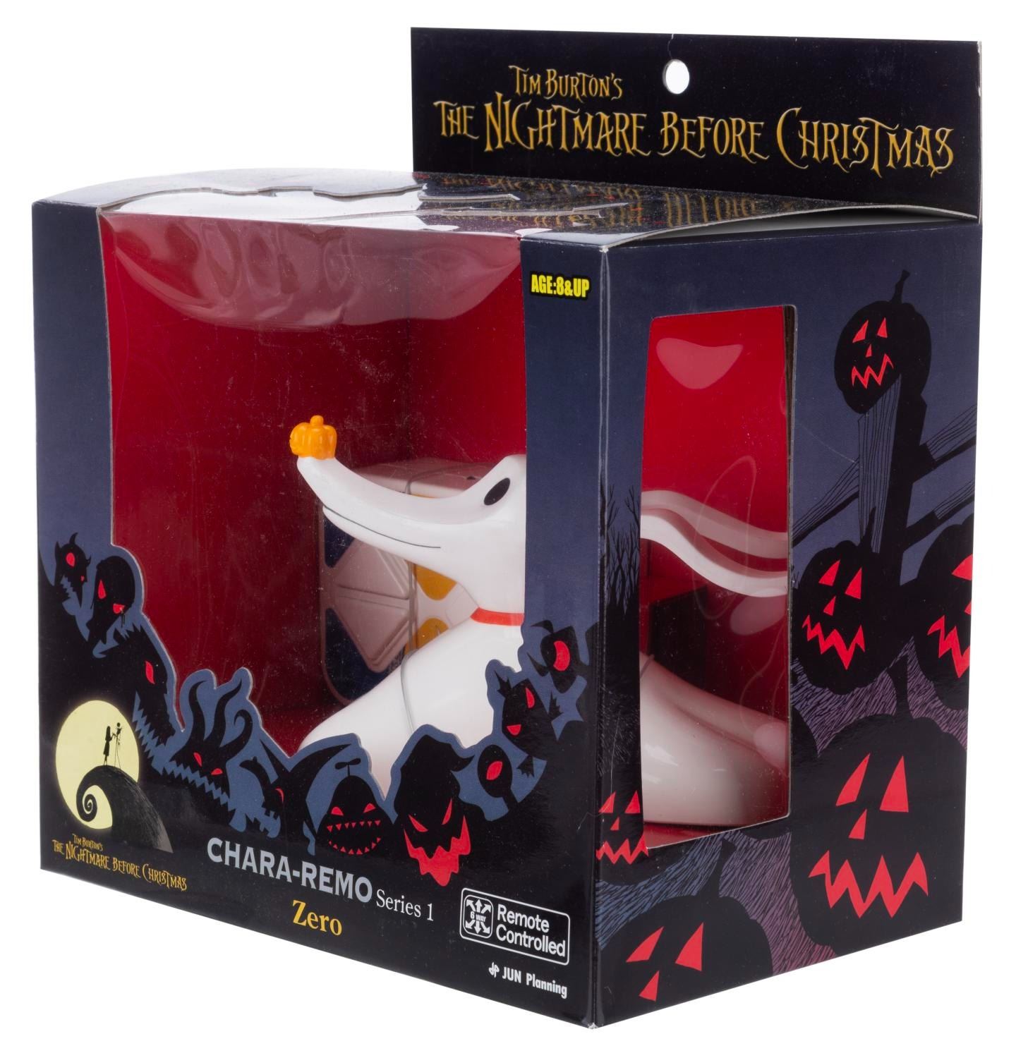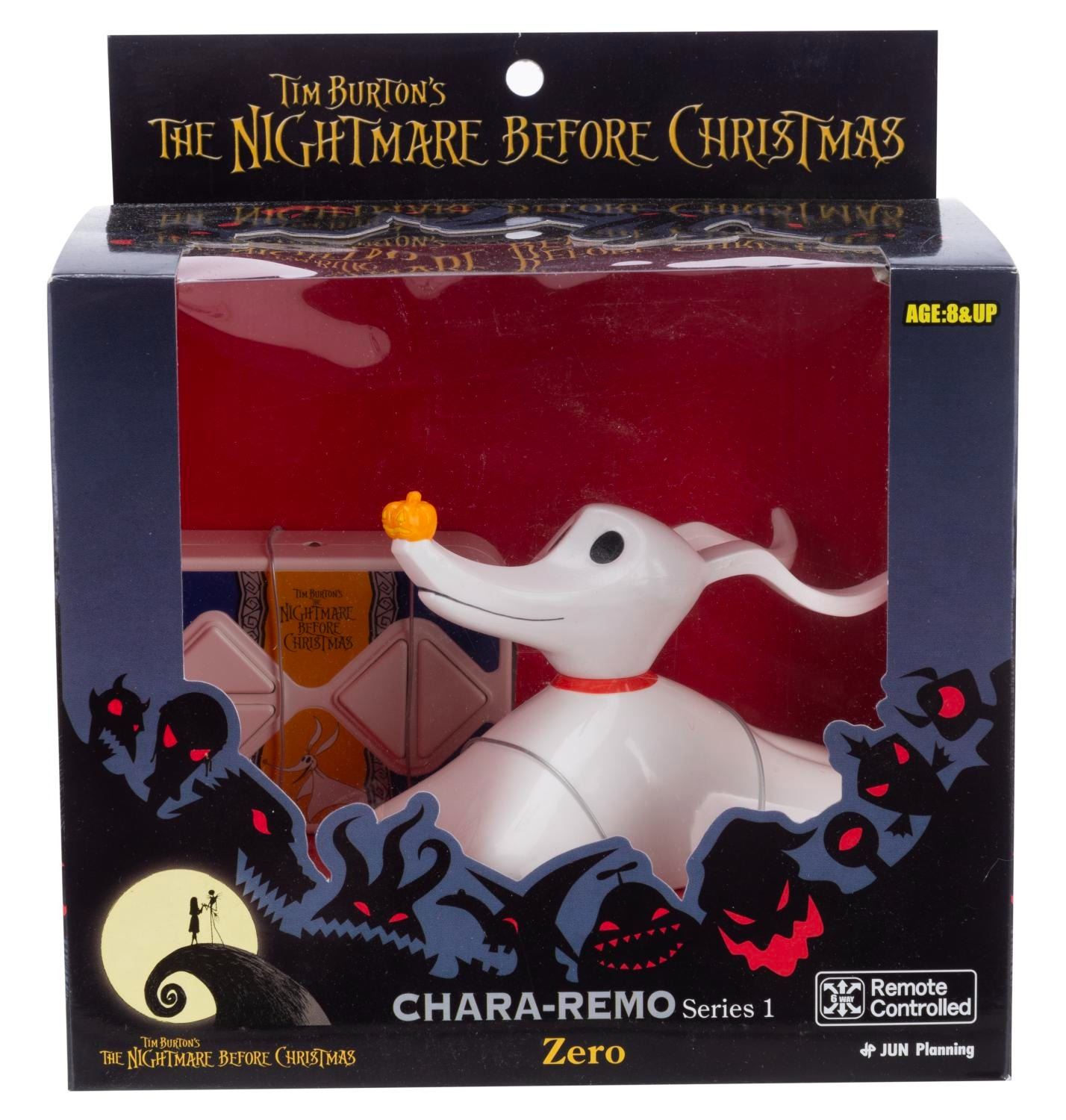 (Jun Planning, 2008) A"Chara-Remo" remote-controlled toy of Zero from"The Nightmare Before Christmas." The toy comes with a remote control and requires four"AAA" batteries (not included. Measuring 5" long, the toy is in fine condition, still sealed in the original box.
