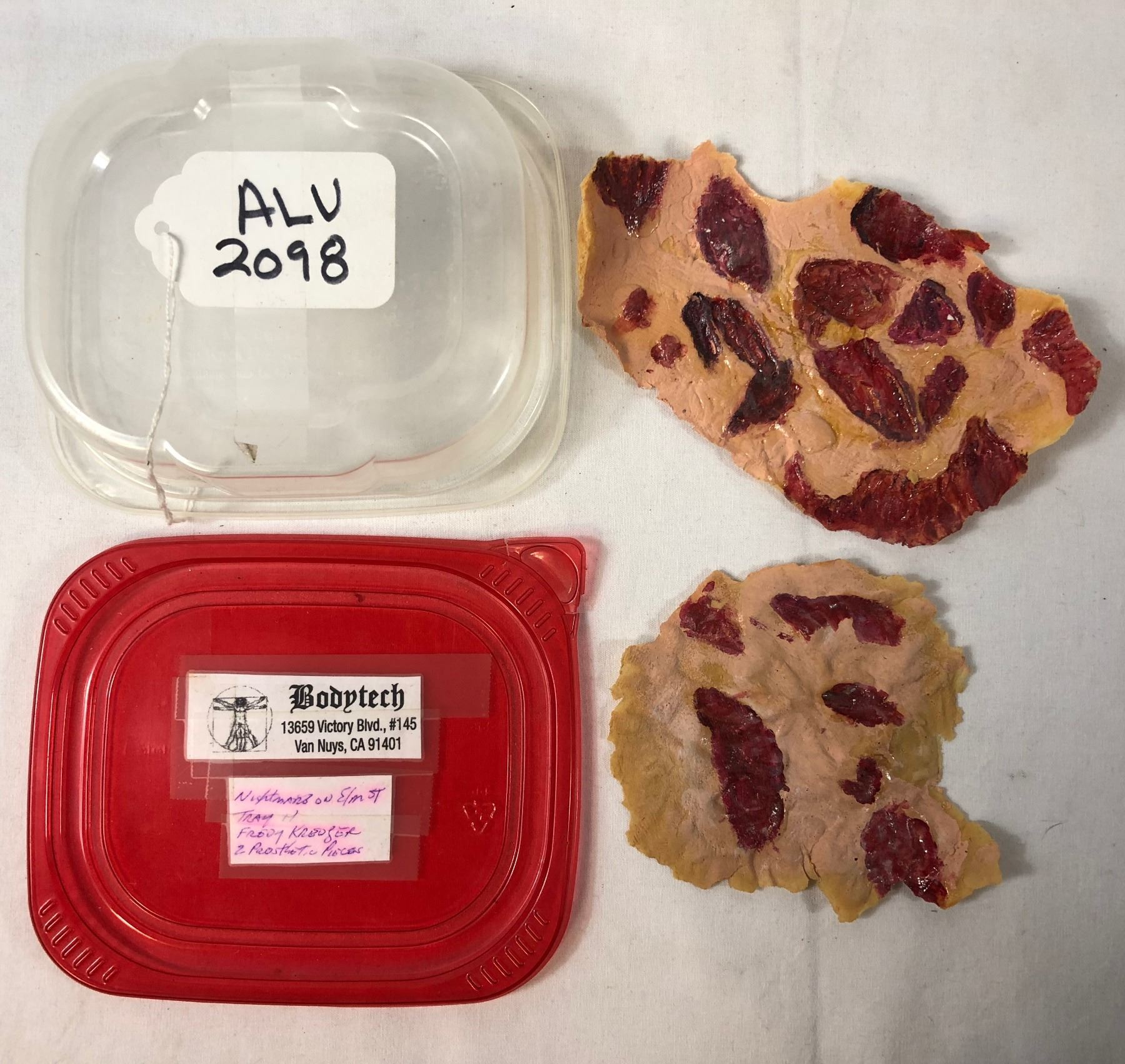 Set of two Freddy appliances from the production of A Nightmare on Elm Street (1984), the horror slasher movie where, The monstrous spirit of a slain janitor seeks revenge by invading the dreams of teenagers whose parents were responsible for his untimely death.
