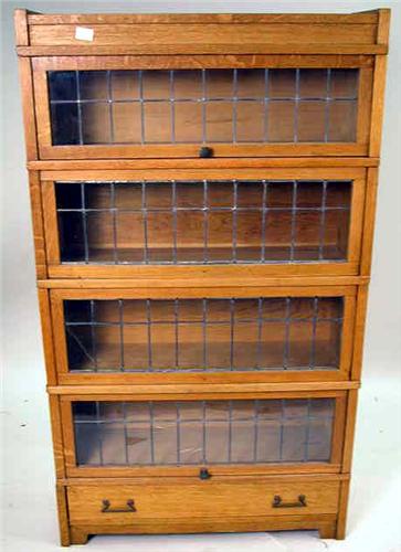 A OAK LEADED GLASS STACKING BOOKCASE;