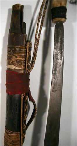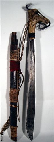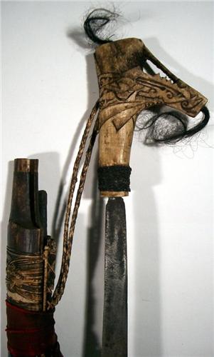 A OLD DAYAK SWORD,c.1950s, the tapering metal sin