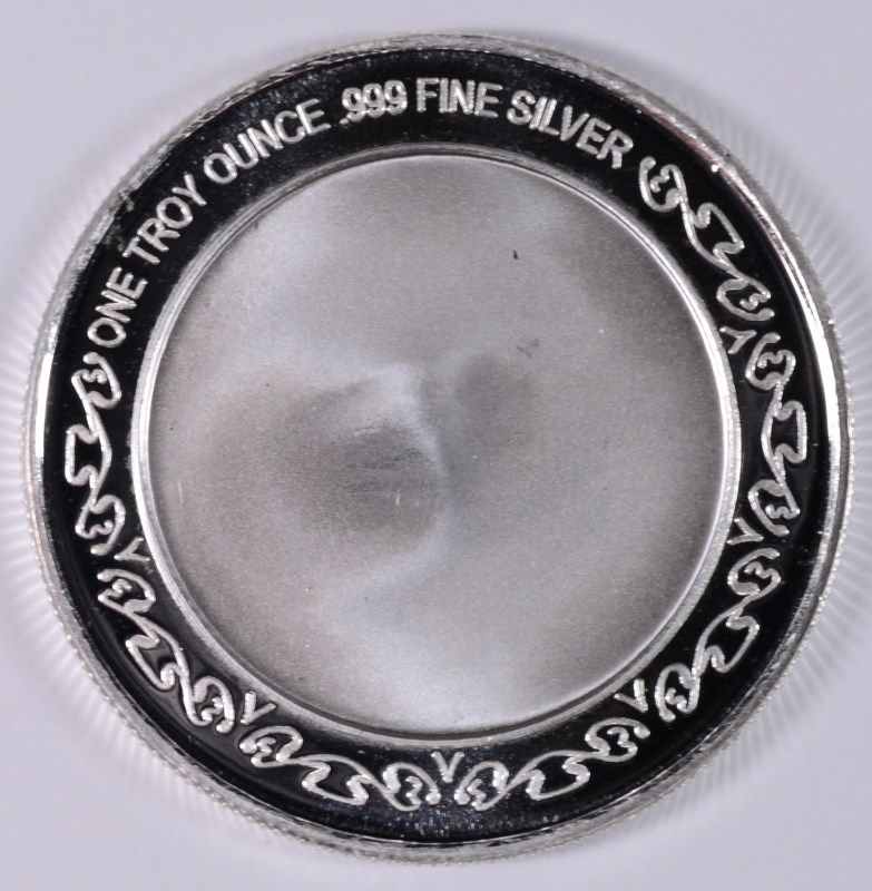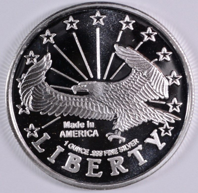 A ONE OUNCE .999 SILVER BULLION ROUND, WITH EAGLE /LIBERTY