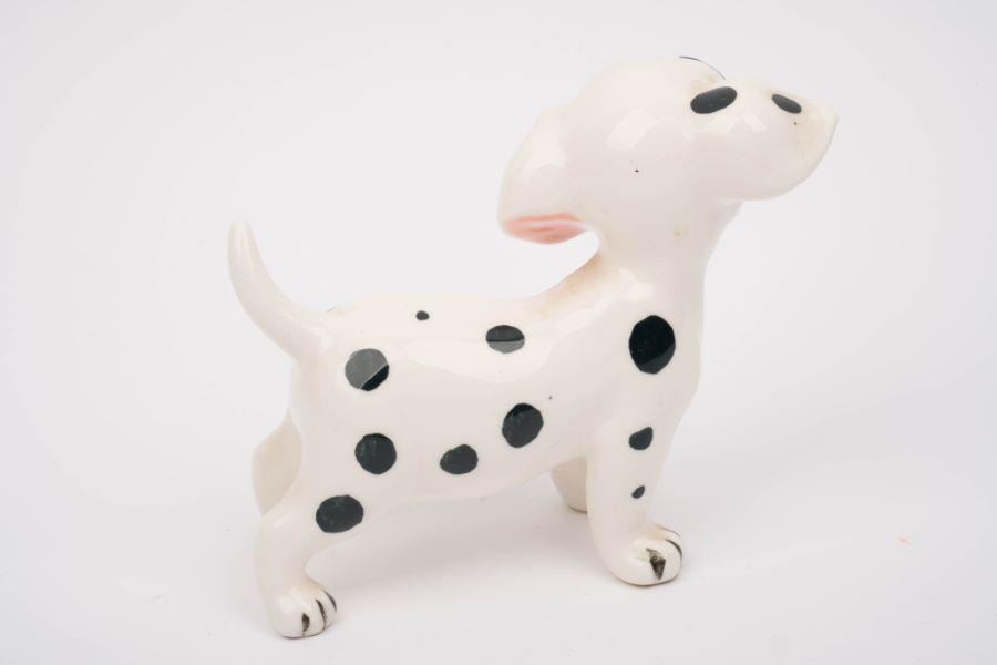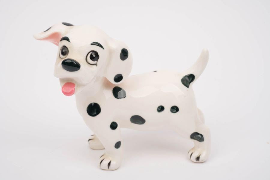 (Enesco, 1960s-70s) A ceramic figurine of the puppy Rolly from "One Hundred and One Dalmatians." Measuring 4.25" x 2.25" and 4.25" tall, the figurine is in very good condition with very light wear from display.