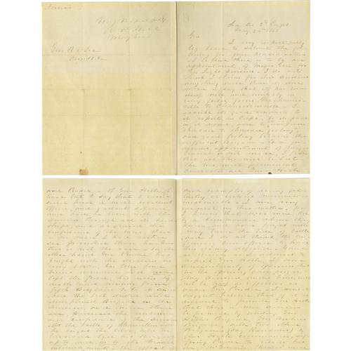 <B>A. P. Hill, Autograph Letter Signed to Robert E. Lee, Requests Appointment as Major General</B></I> four pages, 7.5” x 9.75”, “<I>Hd Qrs 2d Corps</B></I>”, May 24, 1863, to General Robert E. Lee. This, one of Major General A. P. Hill's few surviving Civil War letters, was written while the Army of Northern Virginia was being reorganized in the wake of Stonewall Jackson's death. Lee needed a new divisional commander before launching what would become the Gettysburg Campaign. The most likely candidates were brigadiers Harry Heth and William Pender. As it happened, both generals were promoted and led divisions into Pennsylvania. Here A. P. Hill makes a passionate recommendation as follows: “<I>I very respectfully beg leave to submit the following for your consideration. I believe there is to be one appointment of Major Gen for the Light Division. I do not think I claim for this Division anything more than is due, where I say that it has borne itself well and unitedly on every field from Mechanicsville to Chancellorsville. I ascribe its good conduct to its 'espirit du Corps', to its pride in its name, and to its uniform 'shoulder to shoulder feeling', and good feeling between the different Brigades. If a judicious appointment of Major General is not made, I fear that all this will be lost. The two most prominent candidates are Gens Heth and Pender. Of Gen Heth, I have but to say that I consider him a most excellent officer, and gallant soldier, and had he been with the Division through all its hardships, and acquired the confidence of the men, there is no man I had rather seen promoted than he. Now this is not the case. On the other hand Gen Pender has fought with the Divisions in every battle, he has been four times wounded and never left the field, he has risen by death and wounds from fifth Brigadier to be its senior, had the best drilled and disciplined Brigade in the Division, and more than all, possesses the unbridled confidence of the Division. At the battle of Chancellorsville he seized the colors, and on horseback led his Brigade up to and in to the Federal intrenchments(sp). The effect of such examples of daring gallantry at critical moments is incalculable. I am very earnest in this matter, for I know that 10,000 men, led by a commander whom they know and have fought with may turn the tide of battle, and I do not think the Confederacy can afford to have this army defeated. Hence, as much as I admire & respect Gen Heth, I am conscientiously of opinion that in the opening campaign my Divisions under him, will not be half as effective as under Gen Pender. I would suggest however, that if it is decided to promote Gen Heth that then a new division be formed by uniting Gen Heth's Brigade, Gen Archers Brigade, with two other Brigades, (say Ramseurs) & give Heth command, suffering Pender to retain his men, McGowan's, Thomas' and Lane's. Very Respectfully,</B></I>”. Evenly toned with smoothed fold lines and still crisp. Very fine condition. <BR><B>Provenance:</B></I><I>The William Turner Collection</B></I><BR><BR><b>Shipping:</b> Miscellaneous Collectibles, Smal (<a target="_blank" href="http://www.heritageauctions.com/common/shipping.php">view shipping information</a>)