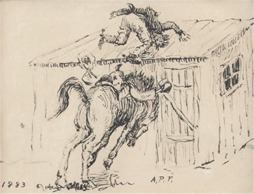 A.P. Proctor (1860-1950). Thrown, 1883. 4 1/2" x 6" India ink. Signed lower center. (est $750-1,000)