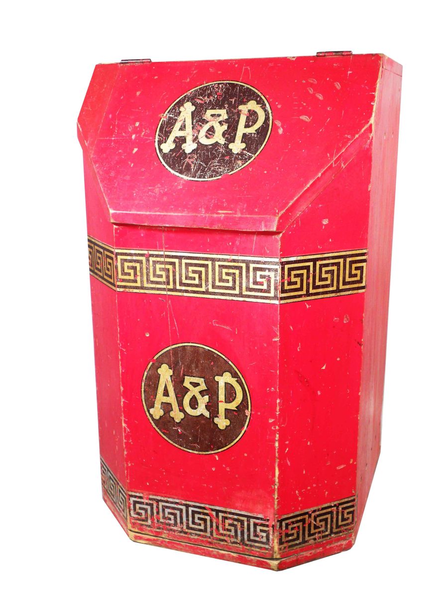 A & P Store Wood Coffee Bin. Original paint, some noticeable scratches otherwise good condition. 18 X 30 X 18 inches.