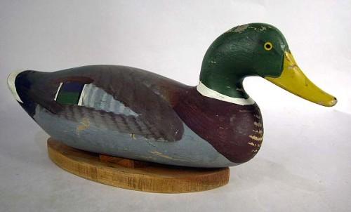 A PAINT-DECORATED MALLARD DRAKE; Maryland, possibly by Captain Harry Jobes or one of his contemporaries, mounted on a later base