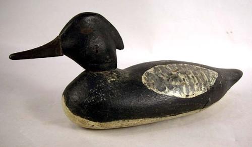 A PAINT DECORATED MERGANSER DRAKE; Probably South Jersey worn and with bone form weight