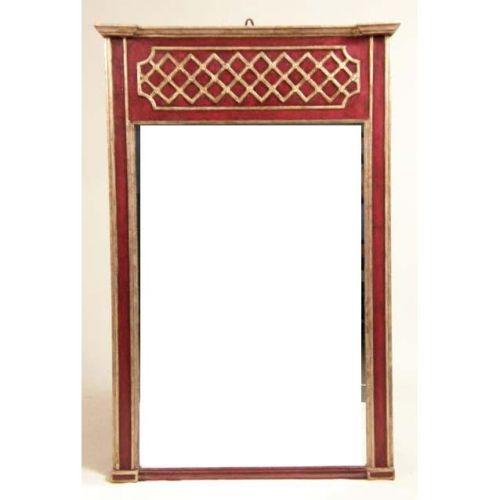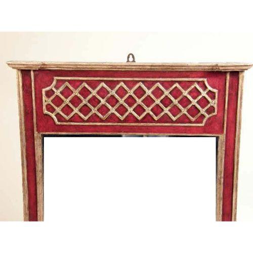 A PAINTED AND SILVERED WOOD MIRROR<BR><BR>In Directiore style, with latticework panel above a rectangular mirror plate, approximately 4`h x 28"w