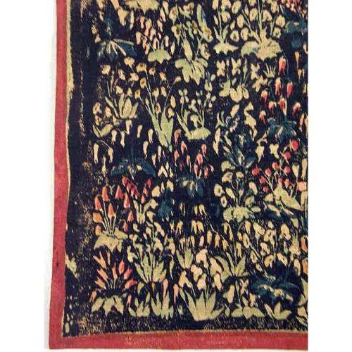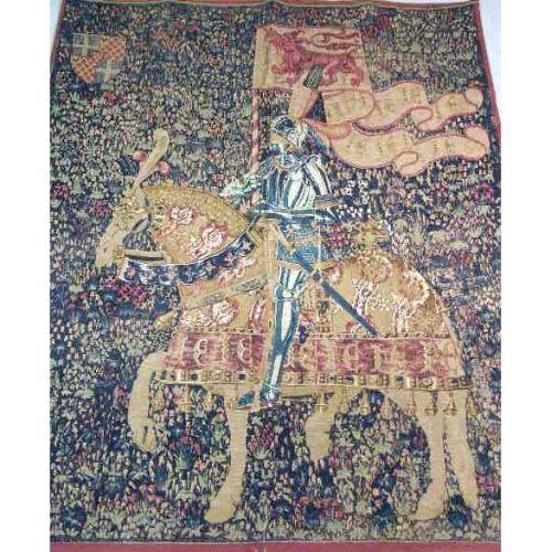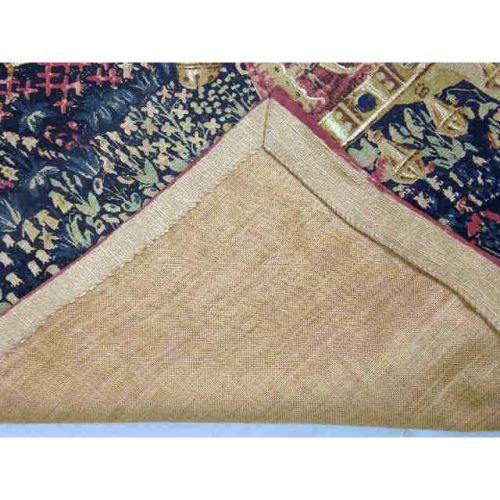 A PAINTED CANVAS COPY OF A MEDIEVAL TAPESTRY<BR><BR>Approximately 4`h x 5`w