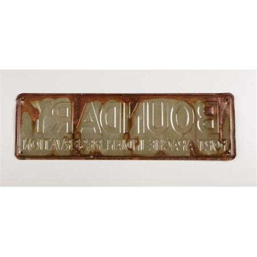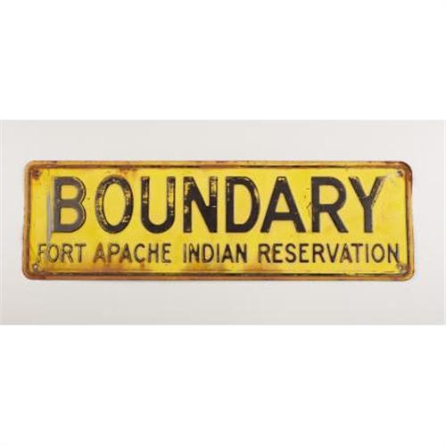 <B>A PAINTED METAL BOUNDARY MARKER<BR><BR></B></I>c. 1930 inscribed, <I>Boundary, Fort Apache Indian Reservation<BR></B></I>Length: 16 inches <B>Condition Report:</B> Overall fair. Metal rusted and dented. Surface scratches and missing pigment. No apparent restoration.<BR><BR><b>Shipping:</b> Requires 3rd Party Shipping (<a target="_blank" href="http://www.heritageauctions.com/common/shipping.php">view shipping information</a>)