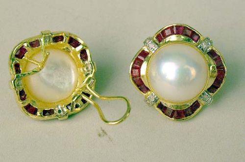 Surrounded by forty channel set rubies, approximately 2 carats, and sixteen diamonds, approximately .20 carats.